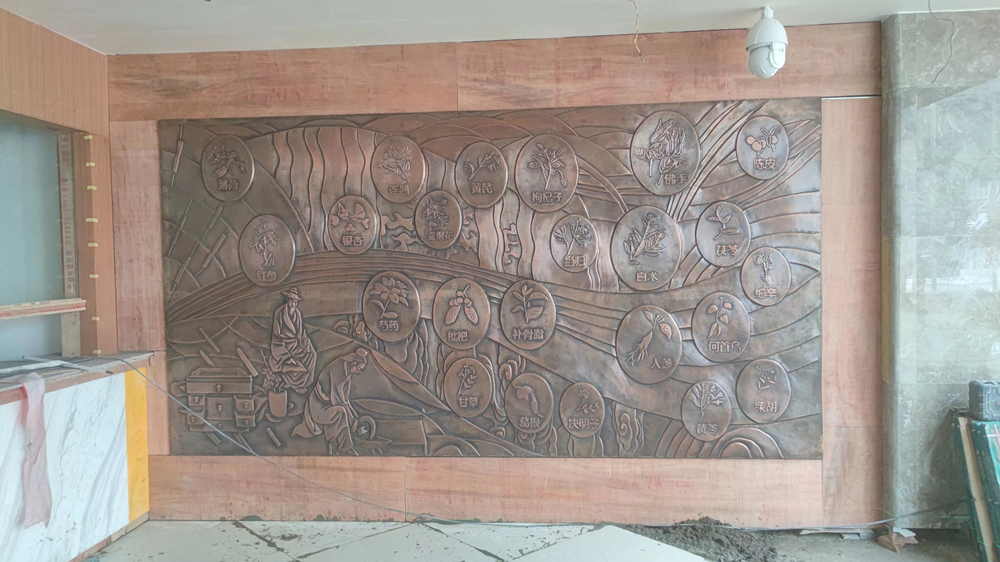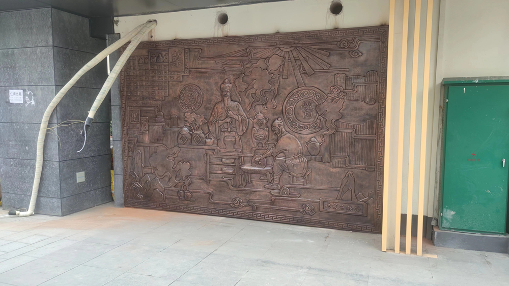 新都區(qū)中醫(yī)藥材市場(chǎng)紫銅浮雕 地雕 玻璃鋼人物雕塑
